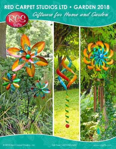 Colorful wind spinners and chimes, weather instruments, wall art, sculptures & more